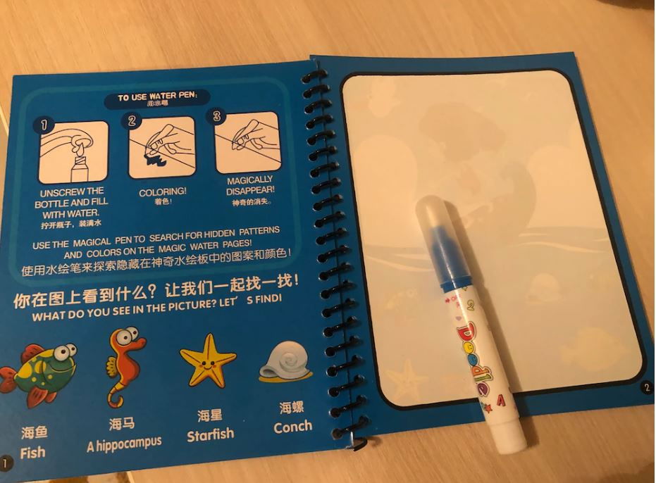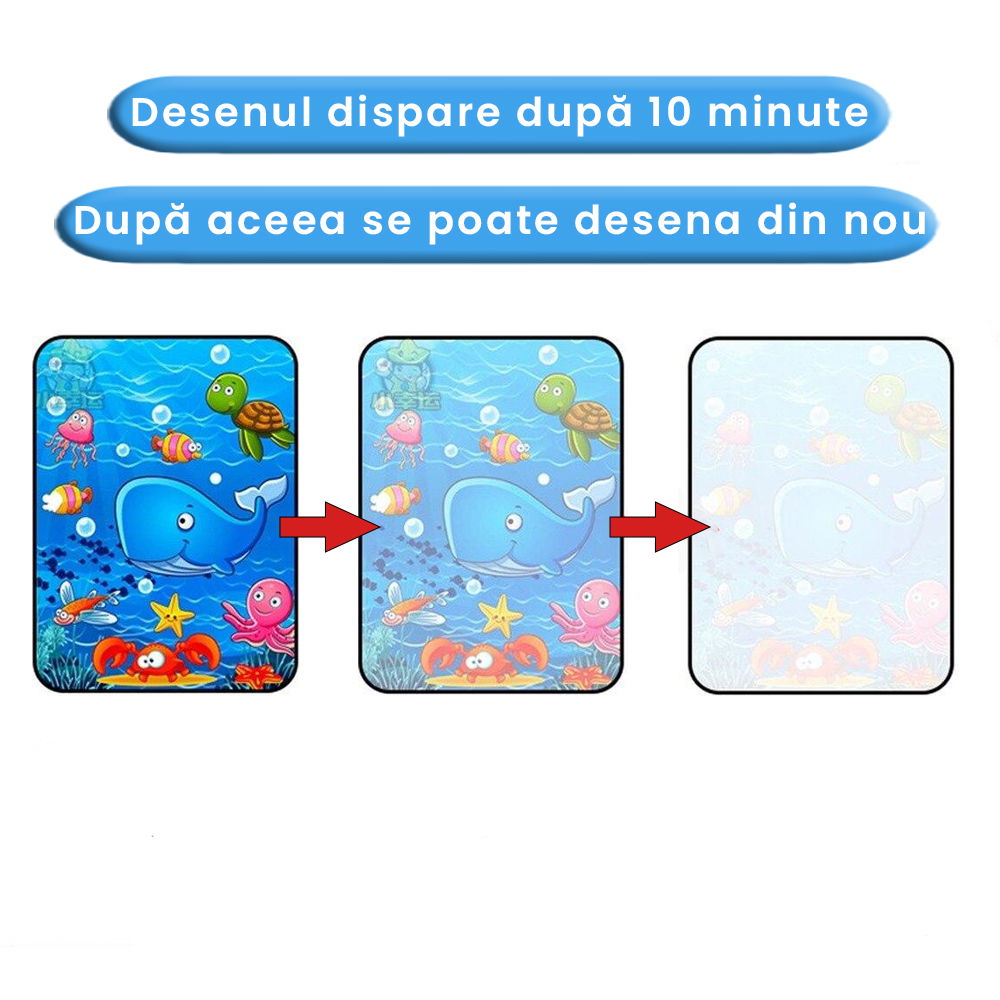 Usor de utilizat - Copilul dumneavoastra il poate folosi cu usurinta, doar adaugati apa pe stiloul nostru special. Apoi, copiii pot desena singuri. Dupa 5-10 minute pentru uscare, copiii il pot picta din nou. De asemenea are dimensiunea perfecta pentru a se strecura in bagajul de mana al copilului dumneavoastra si pentru a-l insoti in fiecare calatorie.